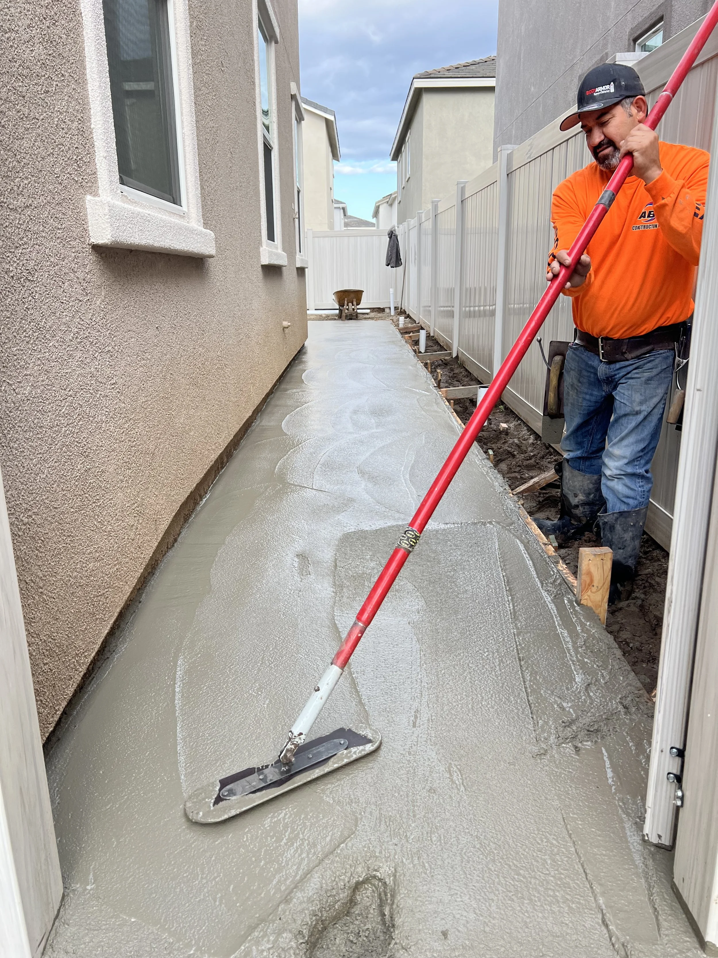 Concrete: approx 292 sq ft. of 3500 psi grey pea gravel broom finished